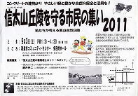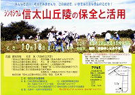 2011 | 2011.1 大阪公害デーで報告、訴え 2011.4 請願署名、要望署名に取組む 2011.5 「信太山丘陵に里山公園」パンフレット作製 2011.8.24 署名提出 請願署名 10368筆 要望署名 10763筆 2011.9.3 連絡会主催「信太山丘陵を守る市民の集い2011」開催 ![]() 2011.9.30 請願採択される 都市環境委員会で請願趣旨説明 委員会で否決 本会議で採択 賛成 12 反対 10 2011.11 「要望書」事業化に関しての要望と質問 2011.12.4 和泉図書館において「信太山丘陵を守る市民の集い」開催 |