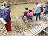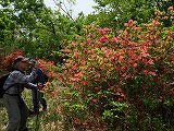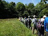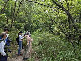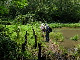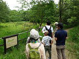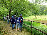 - 15名の参加者を迎えて定例観察会を開催しました。センダイムシクイの鳴き声を聴きながら、カスミサンショウウオの幼生をみんなで池に放流しました