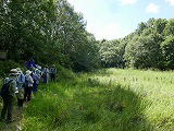 - 8名の参加者を迎えて定例観察会を開催しました。 まとまった雨が降らないので、湿地に入る水が止まっています。